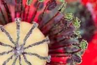 Vergroting van het midden van een klaproos / papaver.