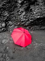 Koop de foto Rode paraplu op vulkanische basaltrotsen in IJsland van MPfoto71 als print op canvas, aluminium dibond, (ingelijste) fotoprint, behang en ArtFrame. Voor jou op maat geprint in Fine-Art kwaliteit.