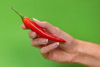 Deze rode peper is gemaakt met hulp van professioneel handmodel Nora.