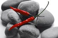 Een extravagante en elegante keuken beeld, rode pepers op grijze stenen