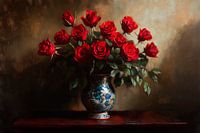 Koop dit bloemen kunstwerk Rode rozen vaas van Poster Art Shop op canvas, aluminium dibond, (ingelijste) fotoprint, behang en ArtFrame, op maat geprint in Fine-Art kwaliteit.