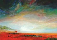 Over het geheel genomen straalt het schilderij "The Red Bull" een aura van energie, natuurlijke kracht en schoonheid uit. Het nodigt de kijker uit om na te denken over de diepere betekenis van kracht, natuur en de relatie tussen mens en dier. De rode stier zelf staat symbool voor deze gedachten en brengt de boodschap over van een krachtig bestaan in de natuurlijke wereld.