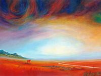 Het schilderij "Red Bull" onthult een levendige verscheidenheid aan kleuren en vormen op een doek van 100 x 80 cm. De kunstenaar heeft hier een terugkerend motief gecreëerd dat fascineert door zijn veelzijdigheid en symboliek.