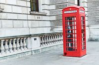 De foto heeft een afbeelding van een oude Britse telefooncel in de stad London. Eens was het een bekend straatbeeld, nu een toeristische attractie