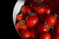 Verse rode tomaten worden van bovenaf gefotografeerd in een kookpot.