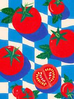 Over ‘Rode tomaten op blauw wit patroon’ van But First Framing