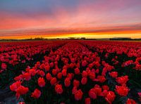 Een prachtige zonsondergang waarvoor ik helemaal klaar stond om deze te fotograferen in combinatie met deze prachtige rode tulpen! Aan de horizon zie je nog net een paar mooie zonnestralen.