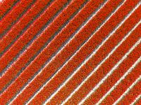 Rode tulpen op akkers in de Noordoospolder in Flevoland, Nederland, in het voorjaar van bovenaf gezien. De Noordoostpolder is een polder in de voormalige Zuiderzee, oorspronkelijk bedoeld om meer land voor de landbouw te creëren.