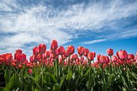 Rode tulpen in het veld