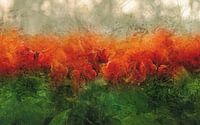 Een foto van een veld met oranje rode tulpen, die ik digitaal bewerkte