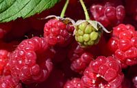 Koop de foto Rode verse frambozen van Ulrike Leone op canvas, aluminium dibond, (ingelijste) fotoprint, behang en ArtFrame, op maat geprint in Fine-Art kwaliteit.