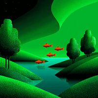Koop dit abstracte kunstwerk Rode vissen boven smaragdvallei van KRAB als print op canvas, aluminium dibond, (ingelijste) fotoprint, behang en ArtFrame. Voor jou op maat geprint in Fine-Art kwaliteit.