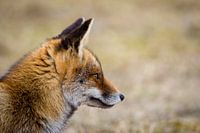 Schattige rode vos gezien van de zijkant, met een close-up van de kop.