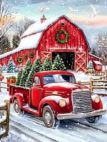 Rode vrachtwagen kerstbomen
