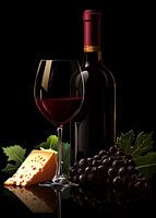 Rode wijn arrangement met kaas en druiven van Pixelbull Design