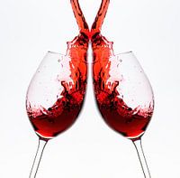 Koop de foto Rode wijn stroomt in het wijnglas van Roland Brack op canvas, aluminium dibond, (ingelijste) fotoprint, behang en ArtFrame, op maat geprint in Fine-Art kwaliteit.