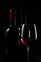 Stilleven met wijnfles en wijnglas, Low key fotografie