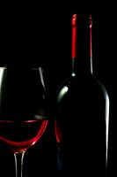 Stilleven met wijnfles en wijnglas, Low key fotografie