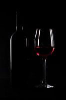 Stilleven met wijnfles en wijnglas, Low key fotografie