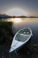 Roeiboot bij zonsondergang op de Hopfensee van Walter G. Allgöwer