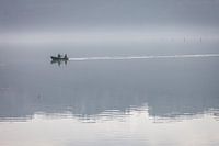 Roeiboot op de Edersee bij Herzhausen, Hessen, Duitsland.