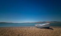 Deze kleine boot ligt aan de oever van de Kalloni-baai in de buurt van de stad Skala op het Griekse eiland Lesbos.