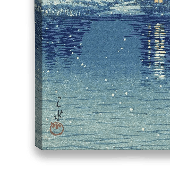 Koop dit schilderij Roeier op rivier in de nachtelijke sneeuw (Ushibori), Kawase Hasui, Japan, 1930 van Roger VDB als reproductie op canvas, aluminium dibond, (ingelijste) fotoprint, behang en ArtFrame, op maat geprint in Fine-Art kwaliteit.
