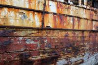 In Frankrijk liep ik langs een oude botenwerf en zag zulke mooie roestige kleuren op de stalen balken van de oude boten, het leek wel abstract! Ik bleef er geboeid naar kijken, afgebladderde verf, vuil, lekstrepen, en allerlei zeealgen, alles zag ik voorbijkomen. Ik zat zo dicht met mijn camera op het roest dat mensen dichterbij kwamen om te kijken wat voor interessants ik wel niet fotografeerde.