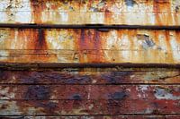 In Frankrijk liep ik langs een oude botenwerf en zag zulke mooie roestige kleuren op de stalen balken van een trailerhelling en op de oude boten zelf, het leek wel abstract! Ik bleef er geboeid naar kijken, afgebladderde verf, vuil, lekstrepen, en allerlei zeealgen, alles zag ik voorbijkomen. Ik zat zo dicht met mijn camera op het roest dat mensen dichterbij kwamen om te kijken wat voor interessants ik wel niet fotografeerde.