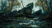 Roestende schepen in het bos