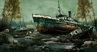 Roestende schepen in het bos