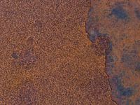 Close-up van het roestige oppervlak met oranje patroon van een wrak van de vissersboot Grimsby Epine (GY7), gestrand op het strand van Djúpalónssandur aan de kust van het schiereiland Snæfellsnes in het westen van IJsland in 1948.