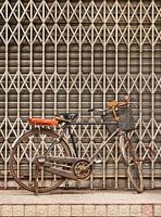 Koop de foto Roestig uitstekende fiets tegen metaalomheining van Tony Vingerhoets op canvas, aluminium dibond, (ingelijste) fotoprint, behang en ArtFrame, op maat geprint in Fine-Art kwaliteit.