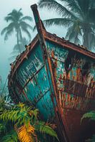 Vergane schoonheid gehuld in mystieke mist: de roestige turkooizen boot vertelt verhalen van vroegere avonturen, terwijl de weelderige natuur haar zachtjes omarmt. De oorspronkelijke pracht straalt nostalgie uit en trekt het oog in de diepte van de compositie. Perfect voor de entree of een gezellige woonkamer, het brengt een vleugje…