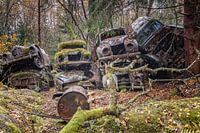 Roestige erfenissen in het bos - autokerkhof in Zweden