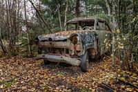 Roestige erfenissen in het bos - autokerkhof in Zweden