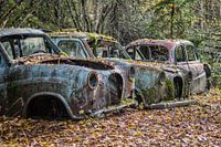 Roestige erfenissen in het bos - autokerkhof in Zweden