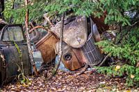 Roestige erfenissen in het bos - autokerkhof in Zweden