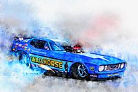 Illustratie van een serie legendarische dragsters en hot rods. Geschilderd met aquarellen op papier.