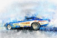 Illustratie van een serie legendarische dragsters en hot rods. Geschilderd met aquarellen op papier.