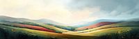 Rolling Through Colorful Silence - Dit abstracte schilderij van het glooiende landschap benadrukt veelzijdigheid in zijn kleurgebruik en brengt een dynamisch en modern gevoel voor natuur over door zijn weergave.