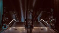 De combinatie van het grafische lijnenspel, de spookachtige sfeer en de duisternis geeft de foto een filmisch karakter. De foto is in horizontale stand.