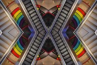 Opname van de roltrappen in Woonmall Alexandrium Rotterdam samengevoegd tot een kleurrijke kaleidoscoop.