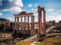 Das Foto zeigt die Reste des Saturn-Tempels (links) sowie des Tempels des Vespasian und des Titus.