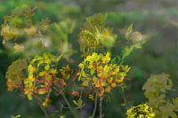 Compositie van bloemen waaronder distels in een soft groene omgeving. Heel geschikt voor de uitvoering als behang waarmee je een prachtige en rustige achtergrond creeert in bijvoorbeeld de hal. Landelijk