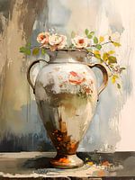Dit elegante stilleven met een prachtige vaas met rozen ademt een duidelijke romantische sfeer uit!