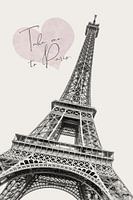 Met zijn 324 meter domineert de Eiffeltoren in Parijs het stadsbeeld. Het is een van de meest bezochte bezienswaardigheden ter wereld. Romantische impressie met de typografie "Take me to Paris".