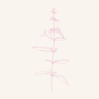 Tekening van een bloem of plant in neonroze op wit.