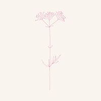 Tekening van een bloem of plant in neonroze op wit.