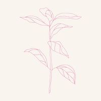 Tekening van een bloem of plant in neonroze op wit.